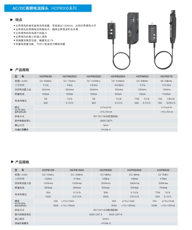 高頻交直流電流探頭(DC/AC)HCP8000系列(一體化)-知用